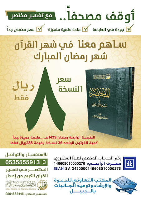 مدونة الباشق الإسلامي للتعريف بالإسلام حملة المليون نسخة من كتاب المختصر لتفسير القرآن الكريم سعر النسخة 8 ريال فقط
