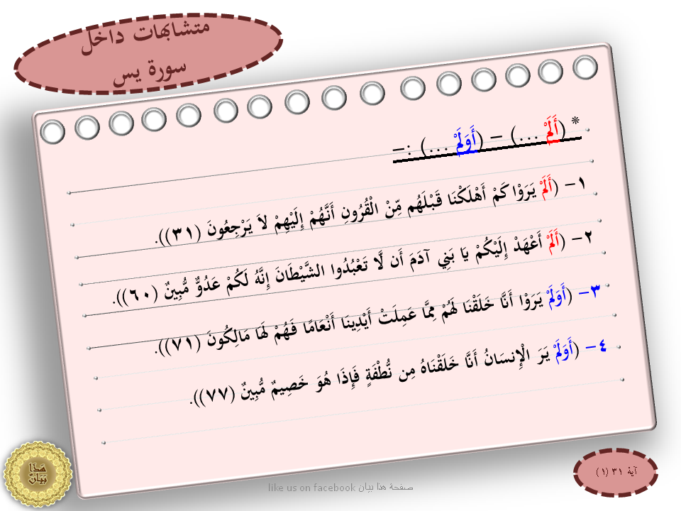 متشابهات سور القرآن الكريم دورة الشيخة أسماء لطفي الخامسة متشابهات سورة يس