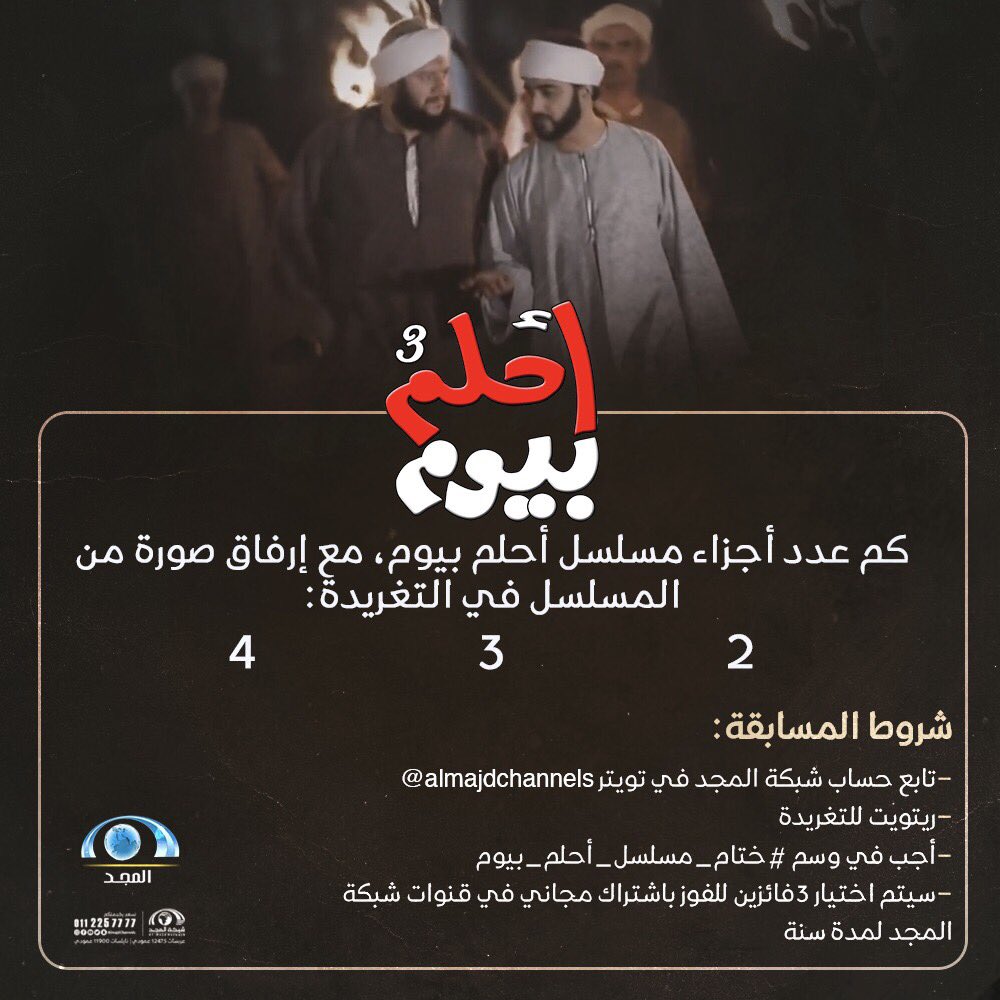 شبكة المجد A Twitter سؤال ختام مسلسل أحلم بيوم طبق الشروط وفالك الفوز