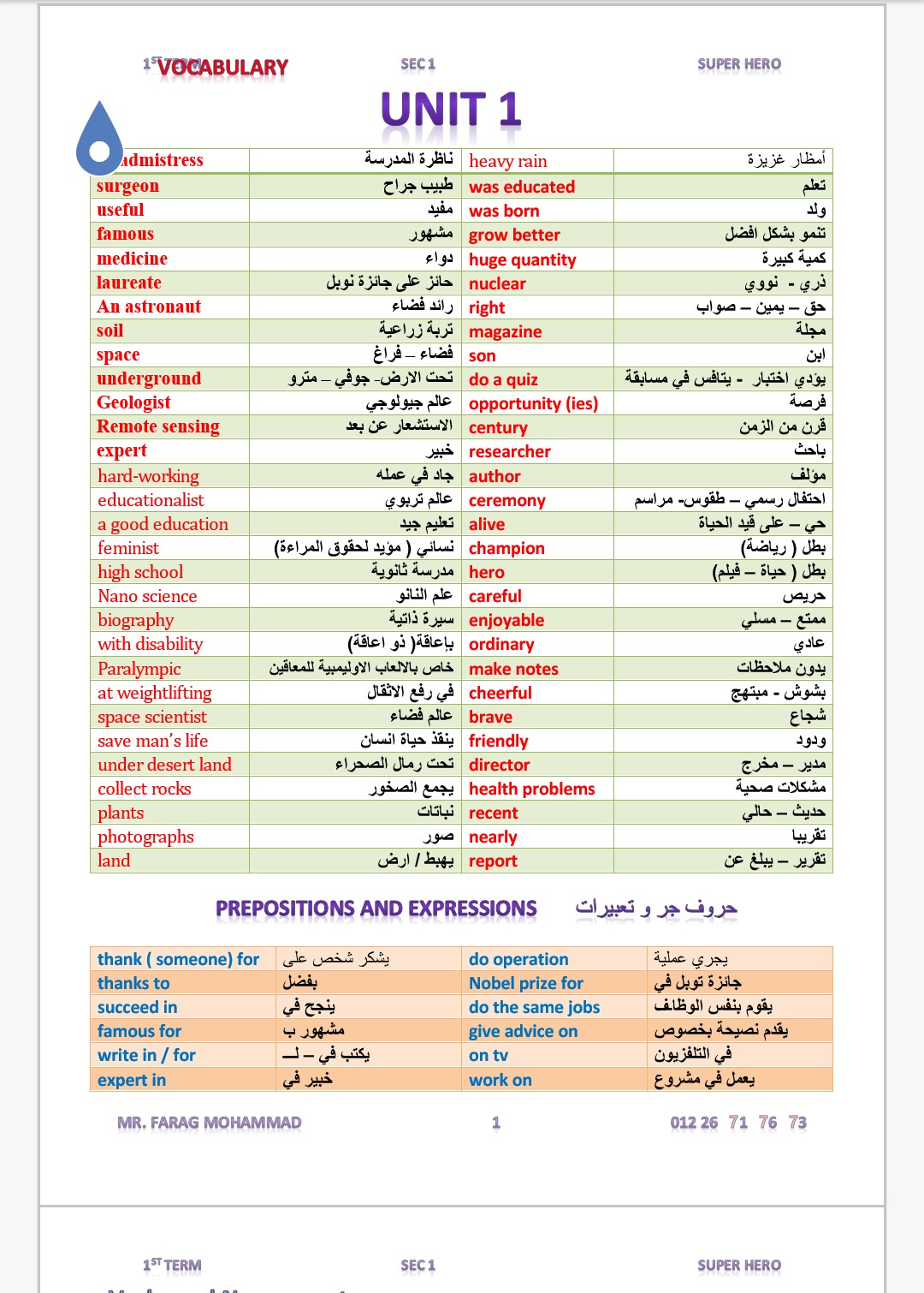 تحميل مذكره اللغه الانجليزيه الصف الاول الثانوي الجديده مستر فرج محمد