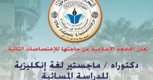 تعلن الجامعة الإسلامية في النجف عن حاجتها للإختصاصات التالية دكتوراه ماجستير لغة إنكليزية للتوظيف في كلية التربية قسم اللغة الإنكليزية الدراسة المسائية