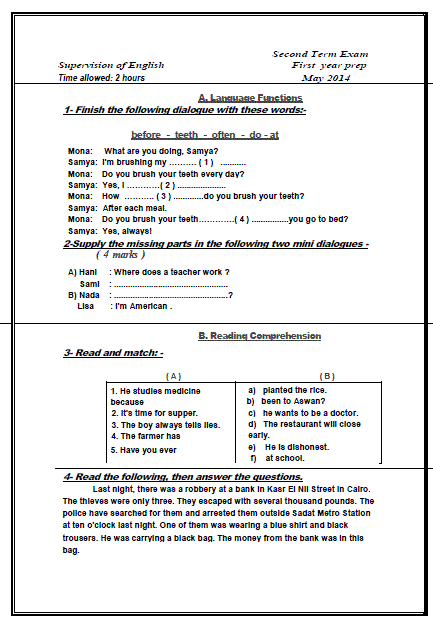 ننشر نماذج الوزارة الاسترشادية فى اللغة الإنجليزية لصفوف المرحلة الإعدادية 2014 للفصل الدراسى الثانى وبدون تحميل