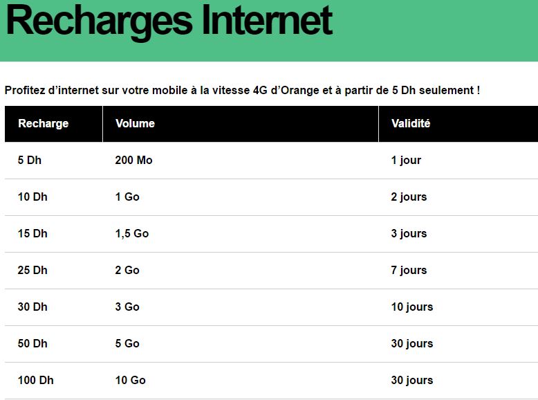 العروض الحالية عند اتصالات المغرب انوي و أورنج فورفيات أورنج المختلفة Forfaits Orange