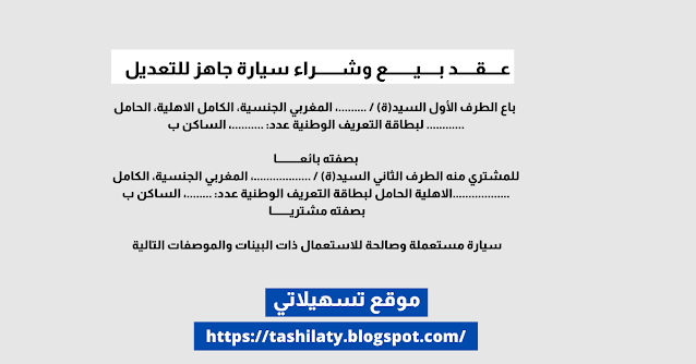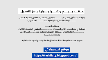 عقد بيع سيارة تونس والبيانات الاساسية في عقد البيع زيادة