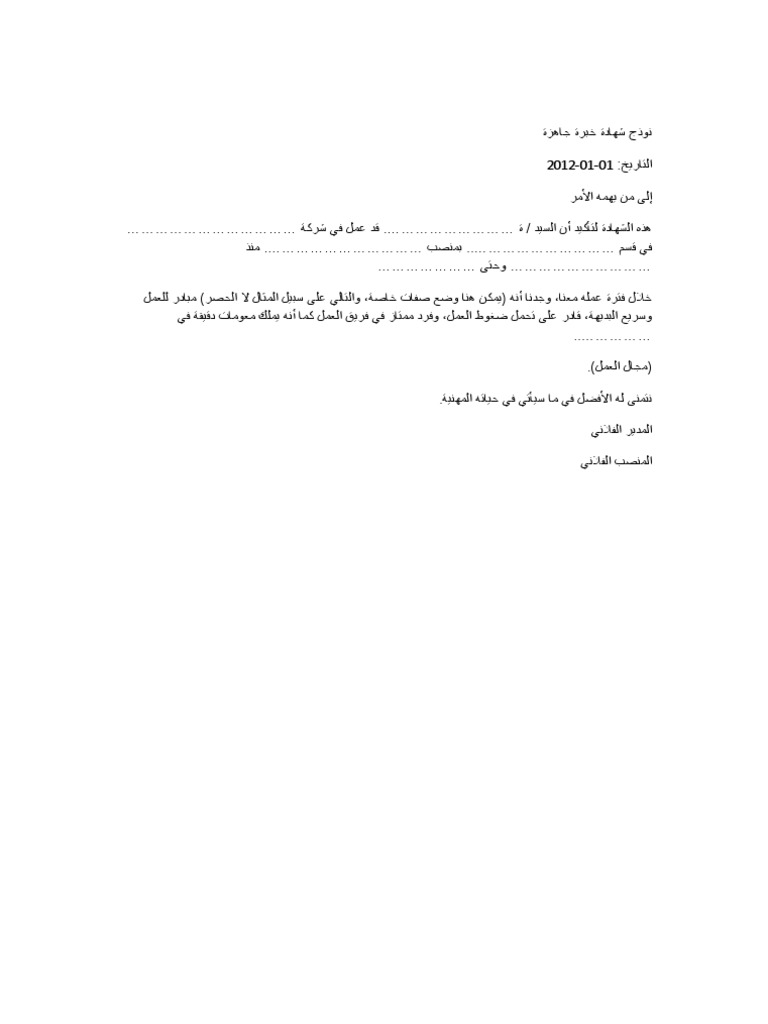 نموذج شهادة خبرة عربي انجليزي Doc