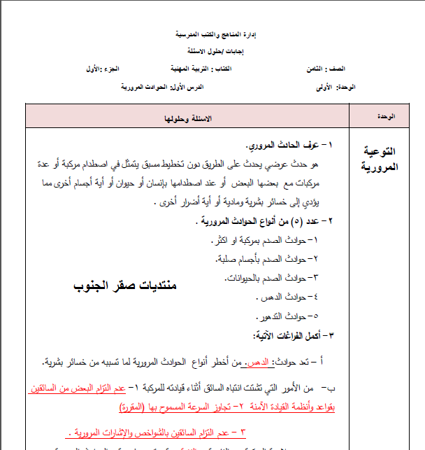 في ملف واحد إجابات اسئلة كتاب مادة التربية المهنية الصف الثامن الفصل الاول 2019 منتديات صقر الجنوب