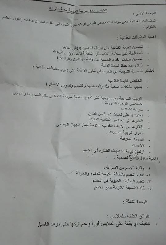 بالصور تلخيص كتاب التربية المهنية للصف الرابع الفصل الثاني منتديات صقر الجنوب